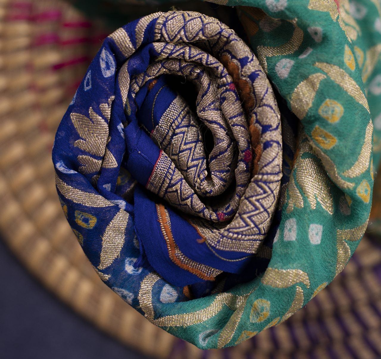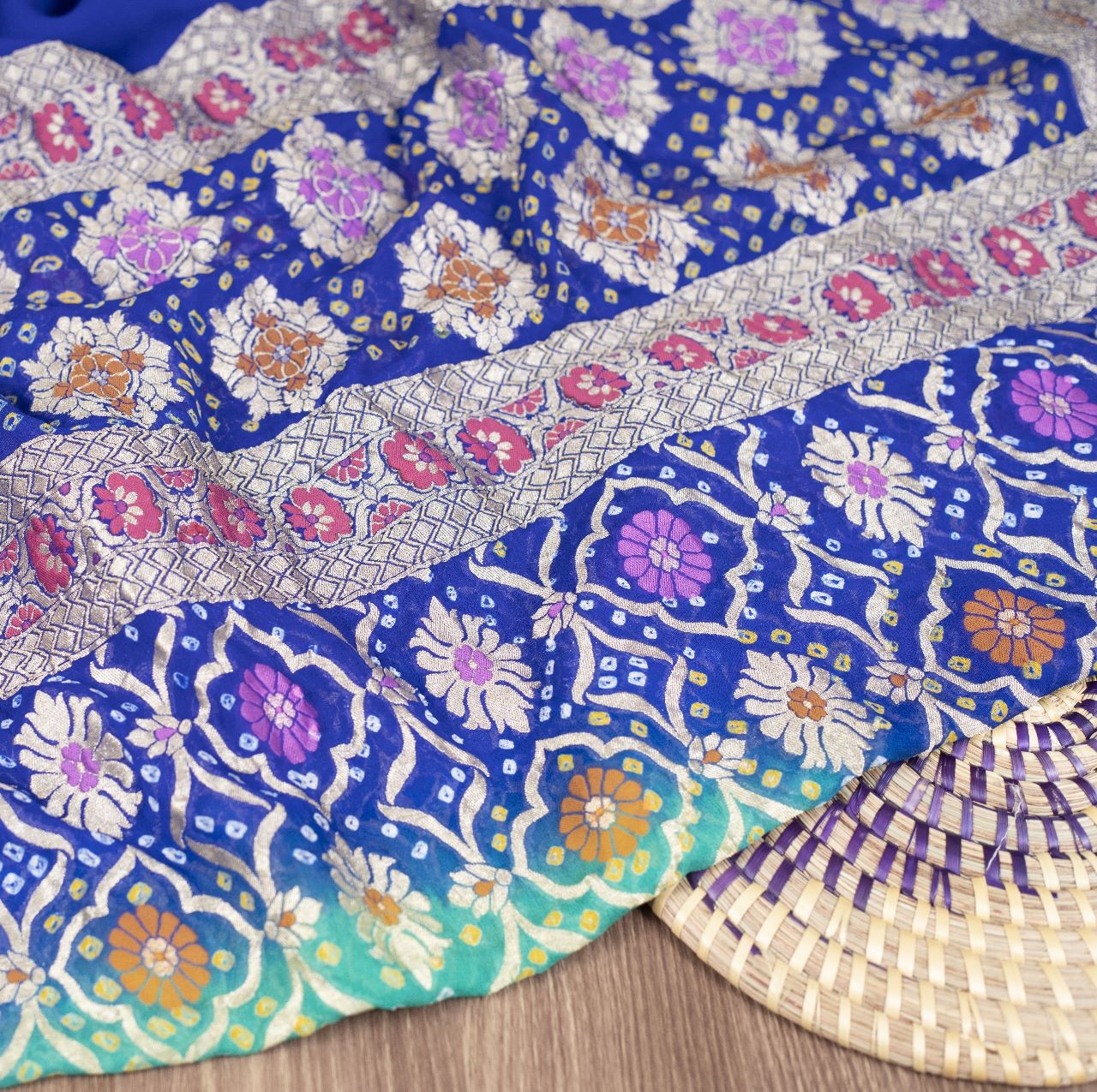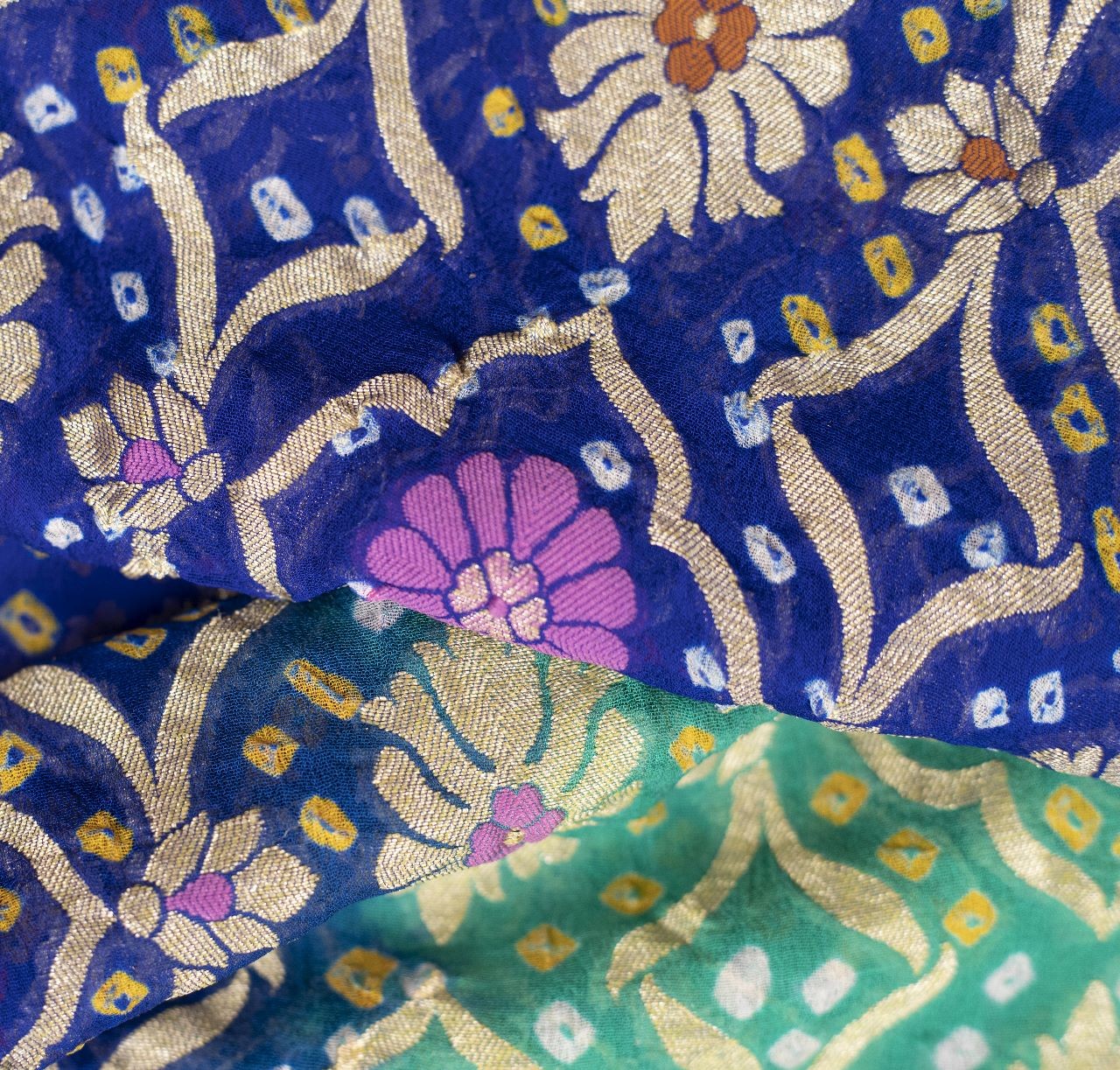 SEA GREEN AND BLUE BANDHANI SILK DUPATTA