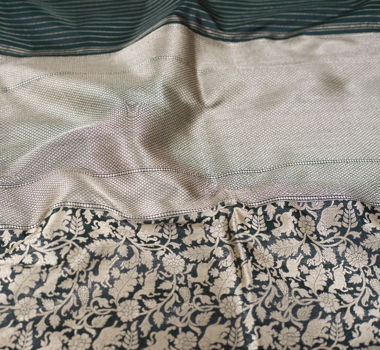 DARK GREEN KATAN FIGURE SILK DUPATTA